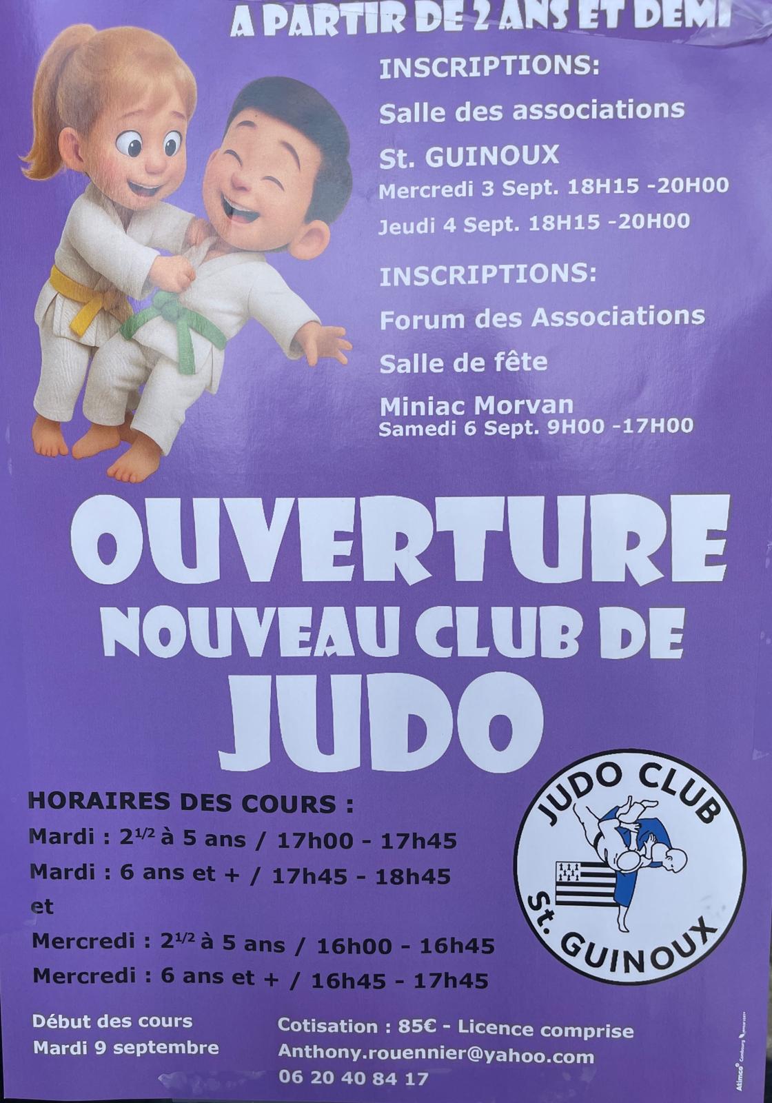 Pour cette rentrée sportive, une nouvelle association à St Guinoux se crée : Le judo pour les jeunes (A partir de 2 ans 1/2 - 5 ans et 6 ans et +)